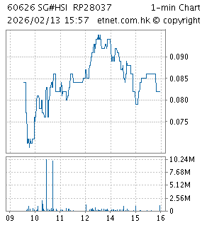 | 59312 | 恒指法興八七牛U | 26,308.000 | 28/07/2028 | 0.034 | -0.045 | -56.962% | 5.44億 | 97.00萬 | |