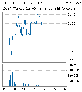 | 23146 | 恒指花旗六五購B | 26,733.000 | 28/05/2026 | 0.058 | -0.020 | -25.641% | 1.56百萬 | 1.33千萬 |