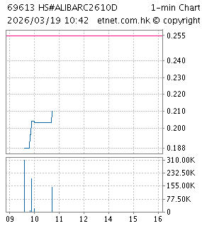 | 26538 | 阿里瑞銀六八購F | 150.090 | 25/08/2026 | 0.115 | +0.014 | +13.861% | 6.35千萬 | 4.49千萬 | |